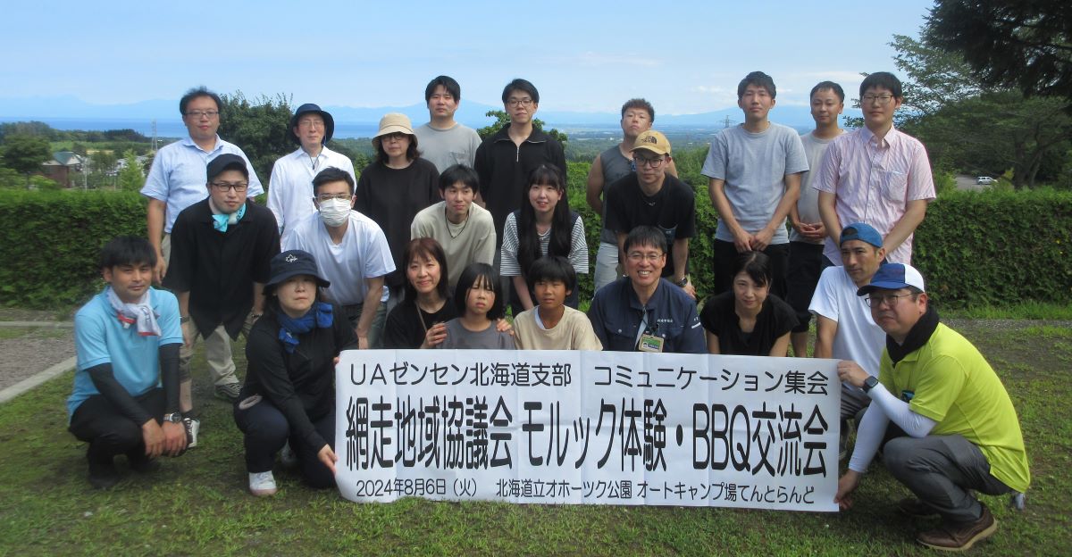 2024年8月6日(火)11時より、快晴・気温30度のなか、知床連峰が見える網走市の天都山にある北海道立オホーツク公園オートキャンプ場てんとらんどにて、モルック体験&交流会を開催しました。7組合24名の参加。