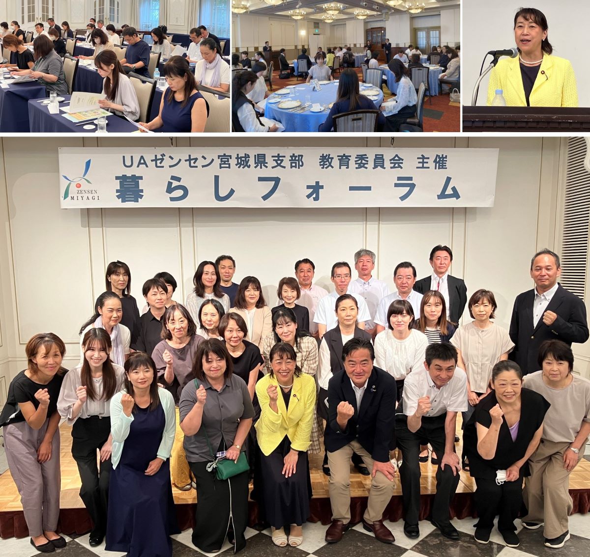 2024年8月27日(火)ホテルモントレ仙台にて、教育委員会主催「2024年暮らしフォーラム」を開催しました。共済事業局によるUAゼンセン共済の学習会、岡本あき子衆議院議員からの国政報告を行いました。テーブルマナーの講習を受けながらの昼食会では、参加者の皆さんが情報交換をし親睦を深めることができました。9組合30名の方が参加しました。