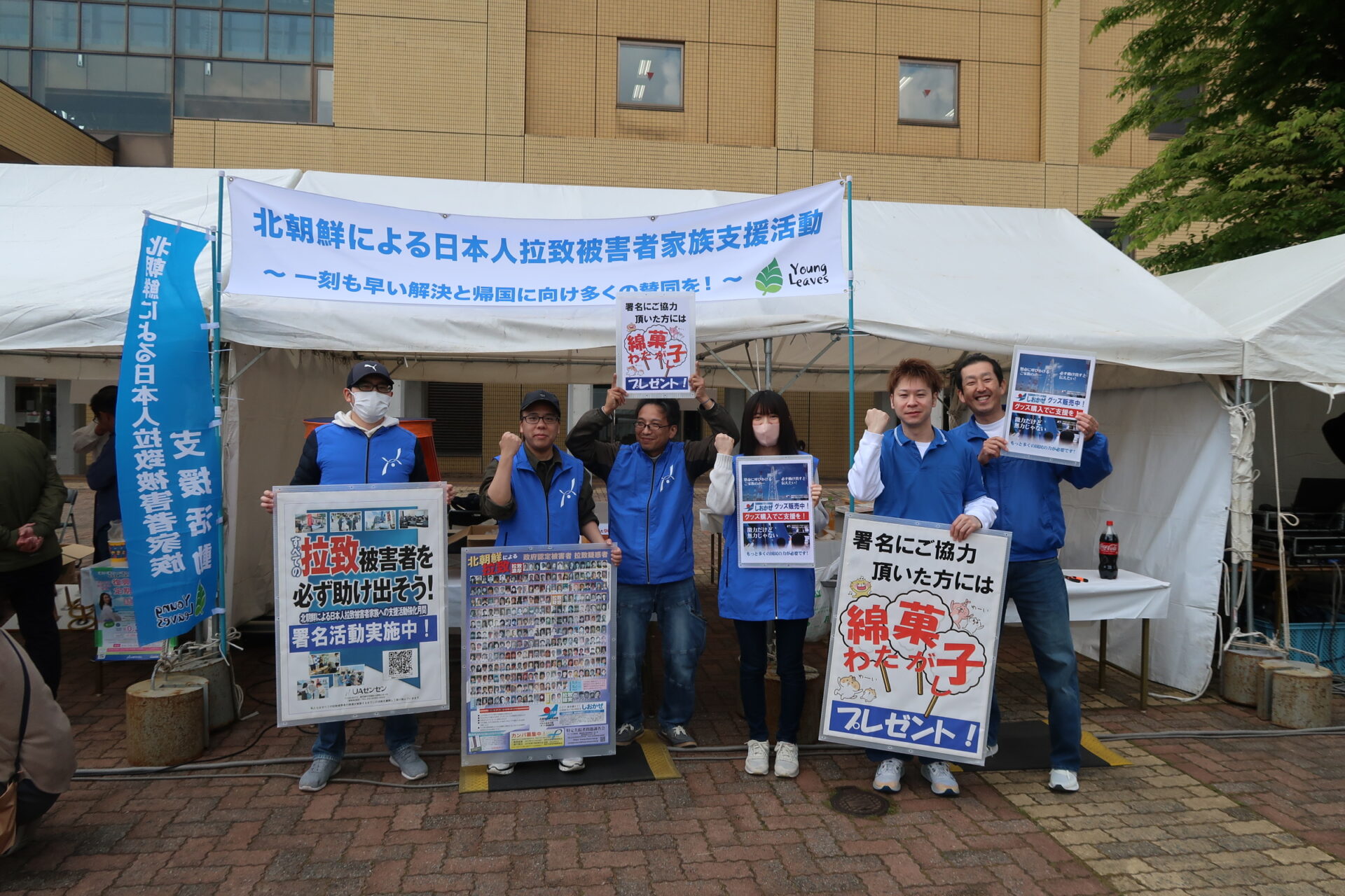 2025年4月29日(火・祝)にフェニックスプラザ(福井市)において、北朝鮮拉致被害者家族支援の街頭署名活動を実施しました。当日は福井地協メーデーの一角をお借りし、街頭署名ならびに「しおかぜグッズ」の販売を行い、ご協力頂いた方に無料で綿菓子をプレゼントしました。当日は天候にも恵まれ、多くの皆さんにご協力を頂き、136筆の署名を集約することができました。