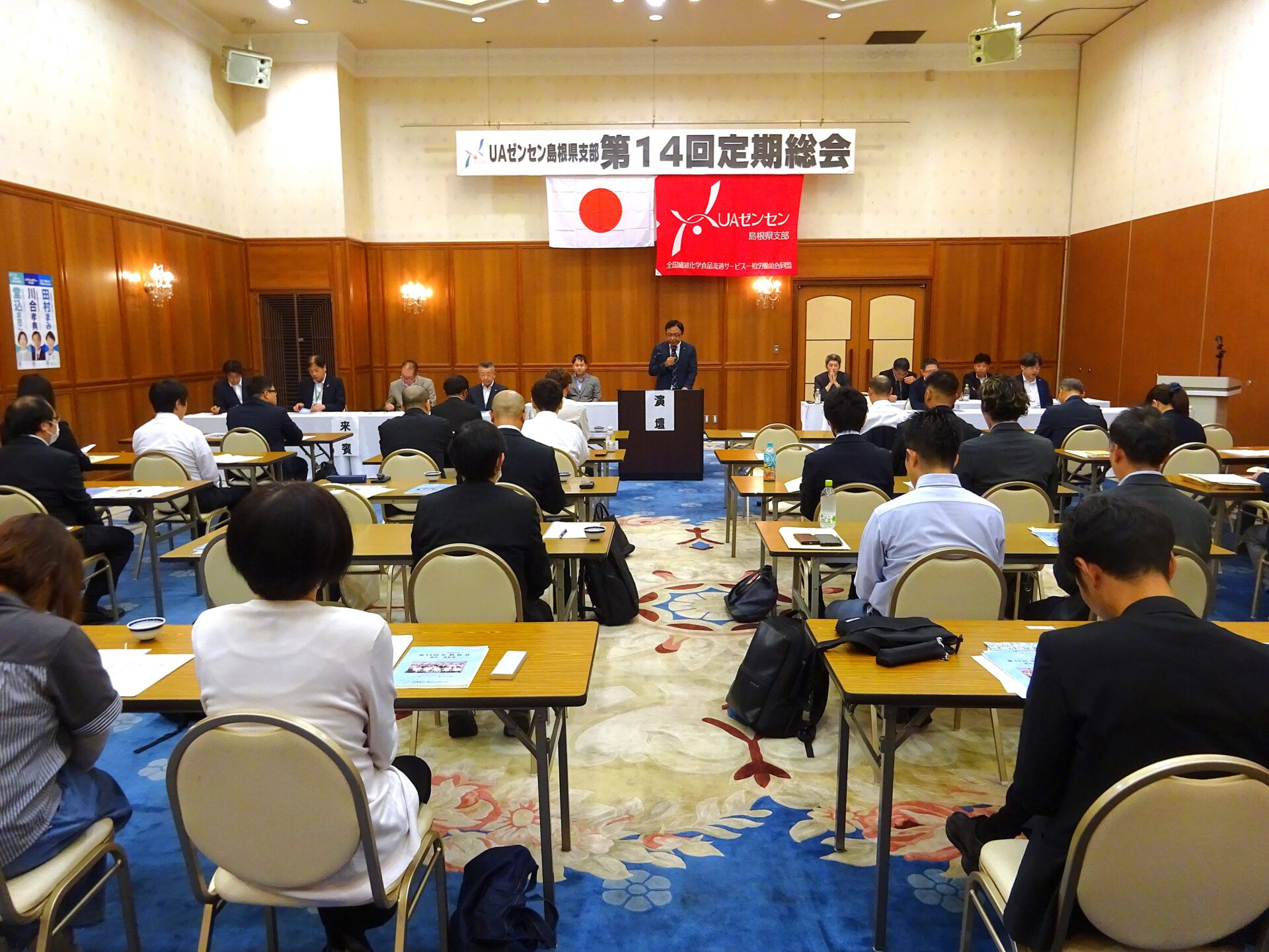 2025年10月4日(土)、所属組合である出雲ロイヤルホテルにて、UAゼンセン島根県支部「第14回定期総会」を開催しました。本部から波岸副書記長を迎え、総勢49名が出席する中、「拓かれた県支部!フェイスtoフェイスで顔の見える活動を!」をスローガンに掲げ、活気ある総会となりました。