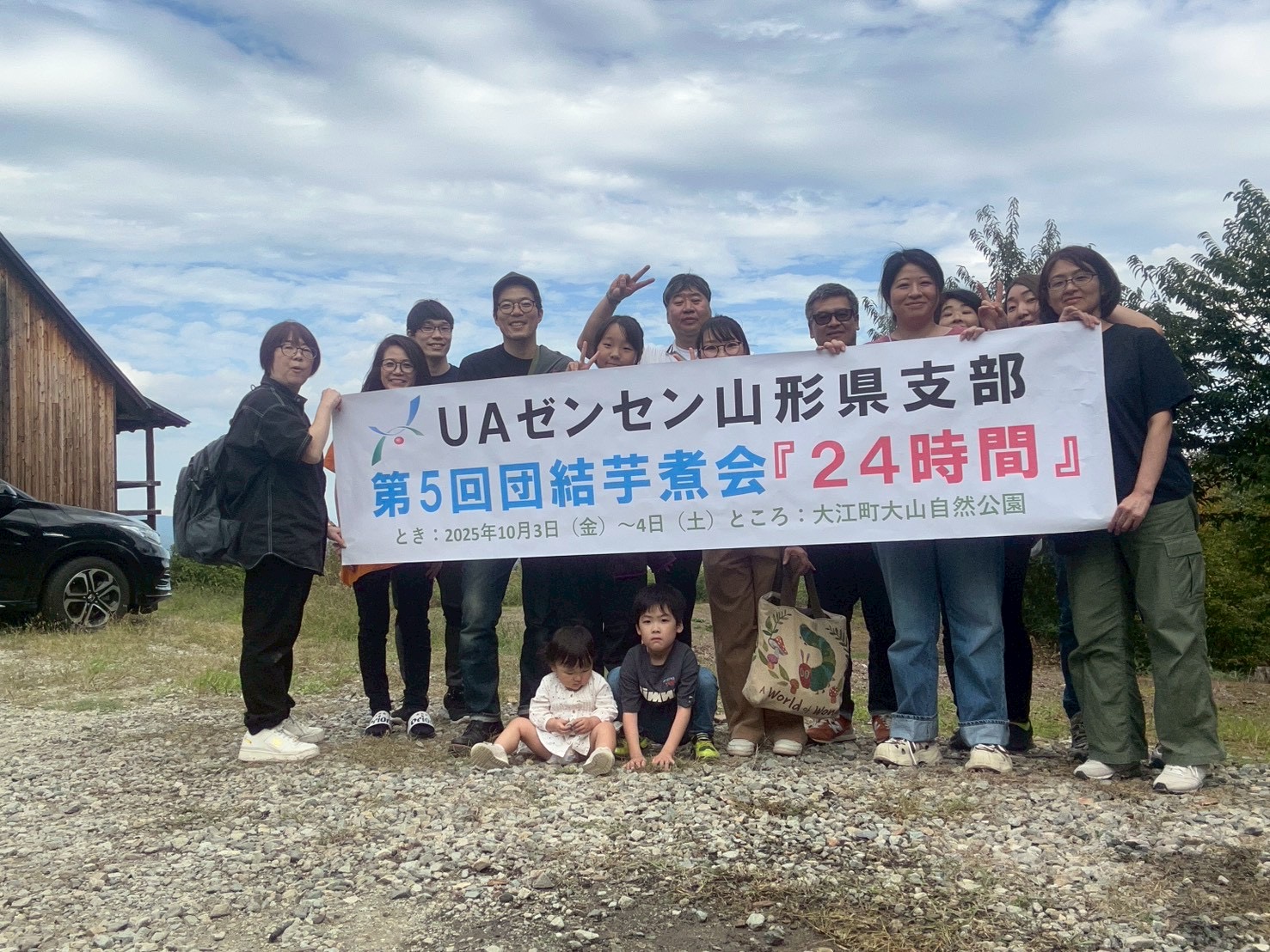 仕事を終えて駆けつけた参加者の中にはご家族連れも多く、夜が更けるにつれて他組合との交流も深まり、深夜まで笑顔と会話が絶えない時間となりました。翌朝は少し眠そうな表情の参加者も見られましたが、ホットドッグや芋煮の朝食で元気を取り戻し、4日からの参加者も温かく迎え入れました。最後は全員で協力して片付けを行い、無事にイベントを終了することができました。