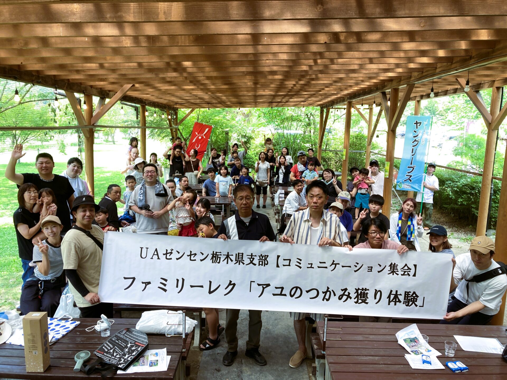2025年8月24日(日)、那須町の那須観光ヤナにて、ヤングリーブスとちぎの企画・運営による「アユのつかみ獲り体験」を開催しました。当日は8組合から58名が参加し、夏の自然を満喫する楽しいひとときとなりました。