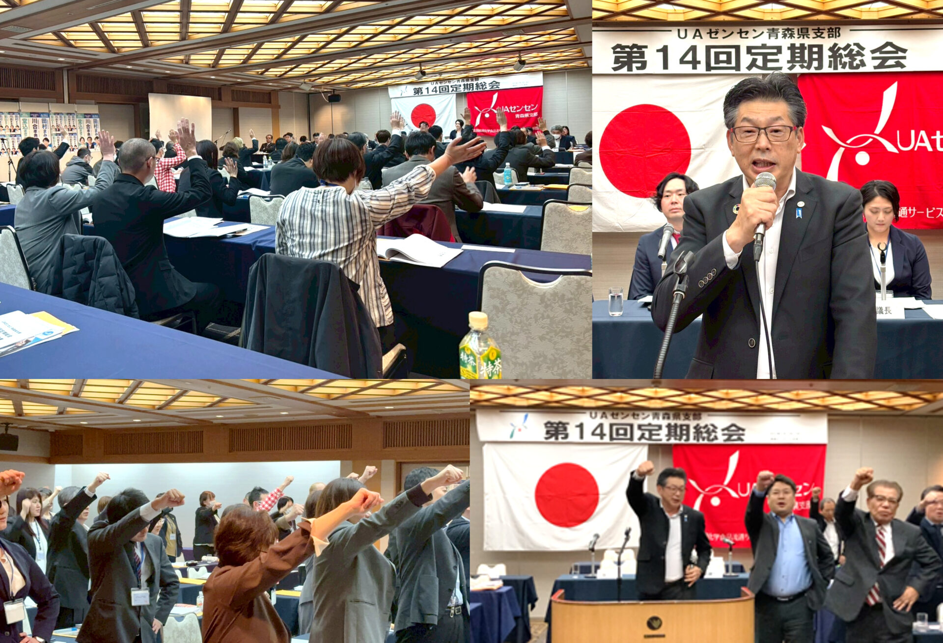 2025年10月18日(土)、ホテル青森にて、青森県支部「第14回定期総会」を総勢73名が出席のもと開催しました。議長団のスムーズな進行のもと、「2026年度活動計画(案)」を含む6つ全ての議案は満場一致で承認されました。最後に佐々木支部長の力強い発声で「ガンバロー三唱」を行い、2026年度の青森県支部活動がスタートしました。