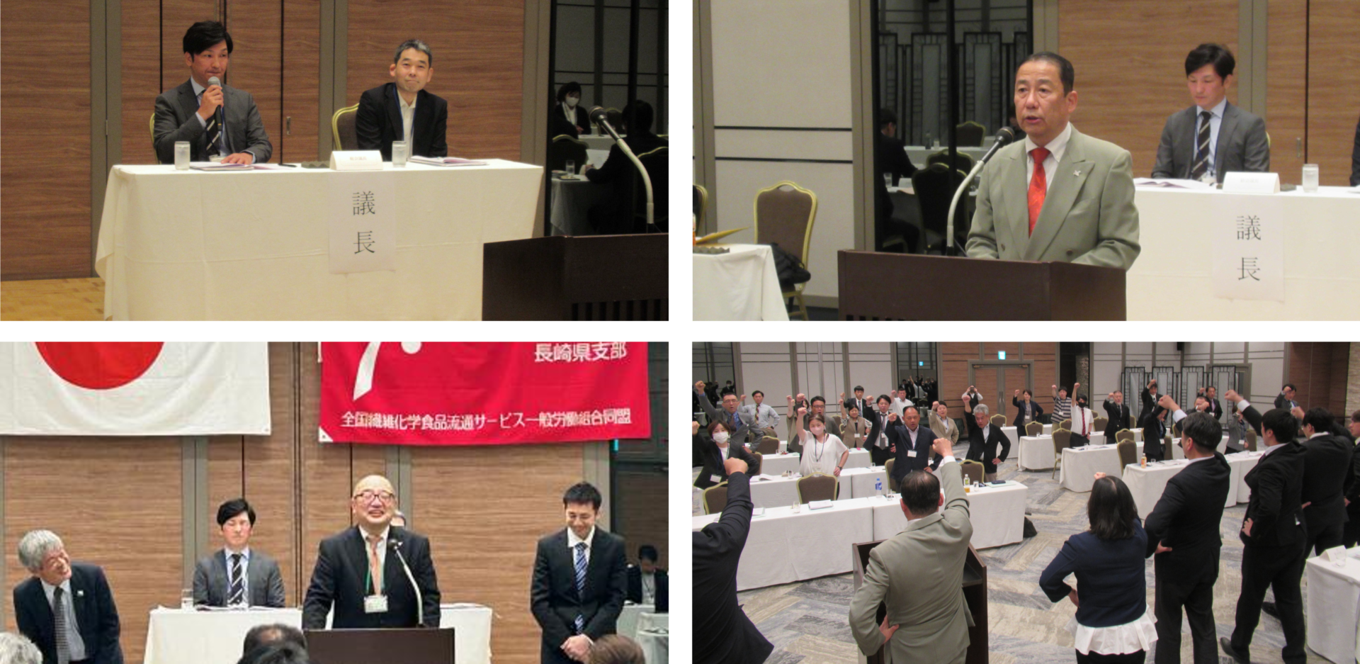 総会では、山口代議員(峯陽労働組合)および田代代議員(エレナ労働組合)が議長団を務め、2025年度活動報告・会計報告に続き、2026年度活動計画、会計予算、役員選出など全5議案について審議を行い、すべての議案が満場一致で可決されました。