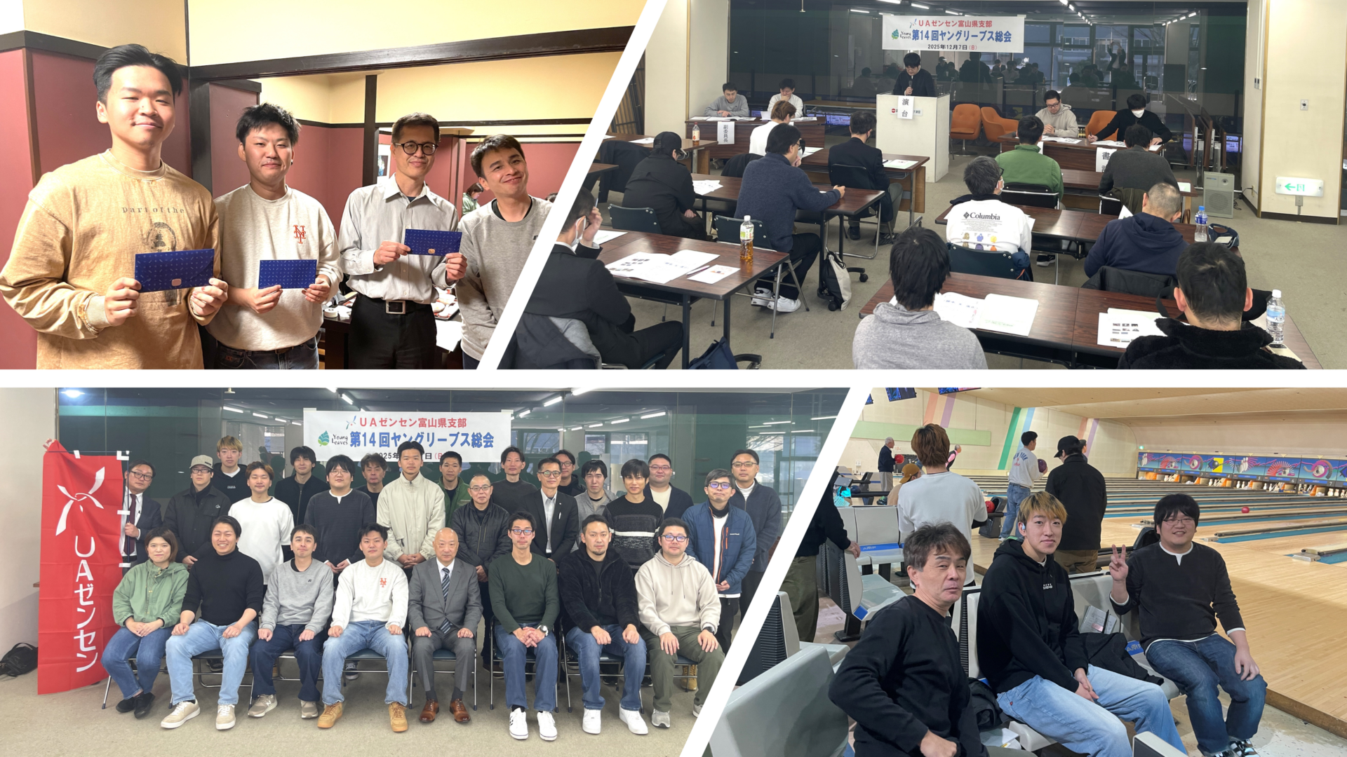 2025年12月7日(日)、富山地鉄ゴールデンボウルにてUAゼンセン富山県支部「第14回ヤングリーブス総会」を開催しました。総勢27名が出席し、2026年度活動計画、2026年度役員選出の2つの議案がすべて満場一致で可決されました。