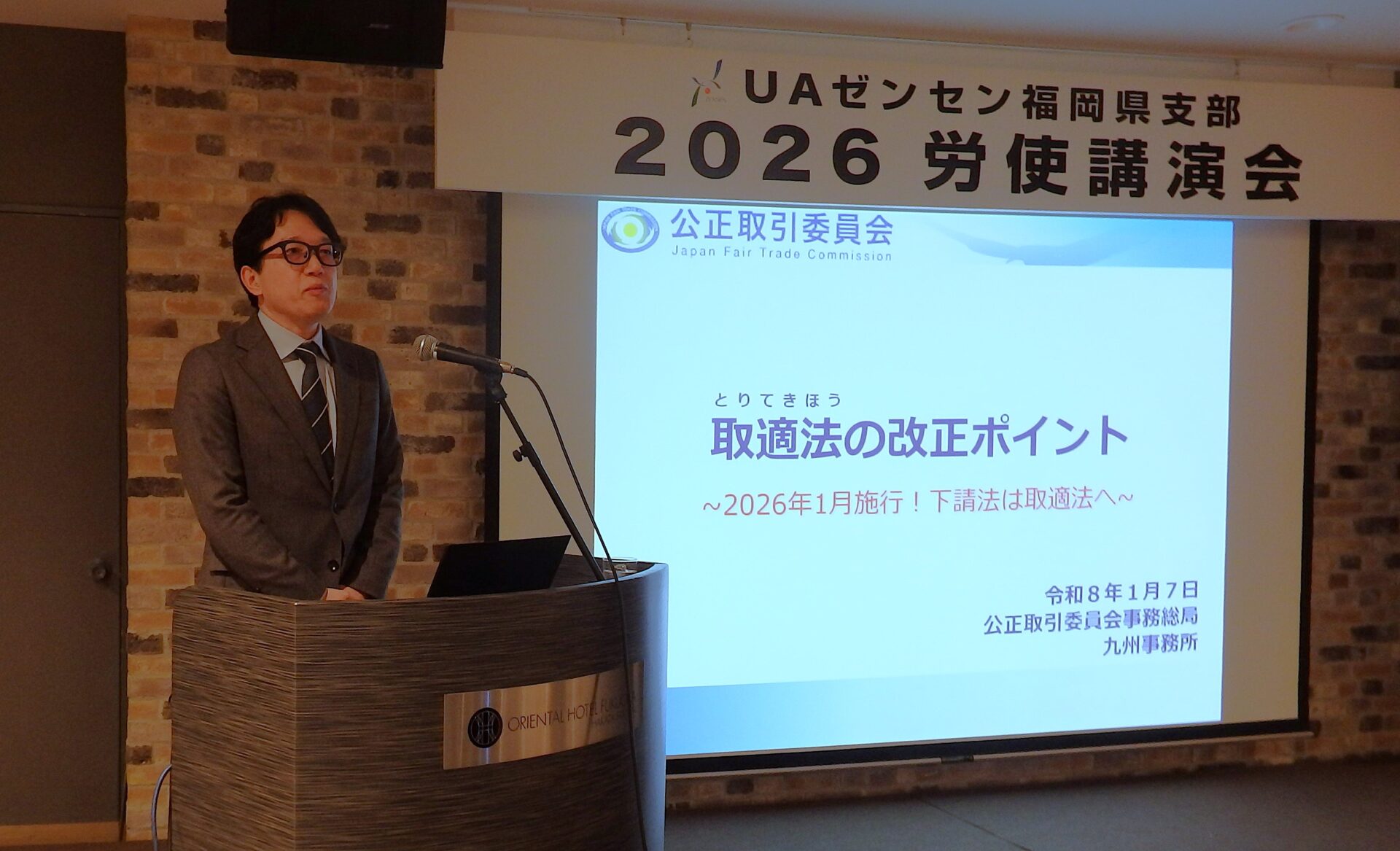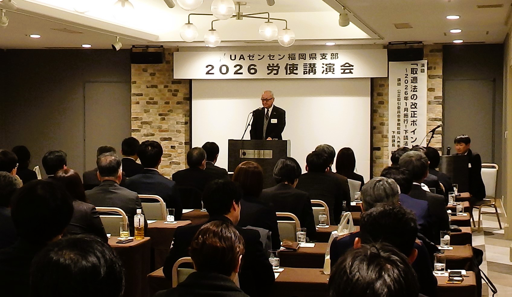 2026年1月7日(水)、オリエンタルホテル福岡にて「2026労使講演会」を開催し、26組合56名、14企業19名の皆さまにご参加いただきました。