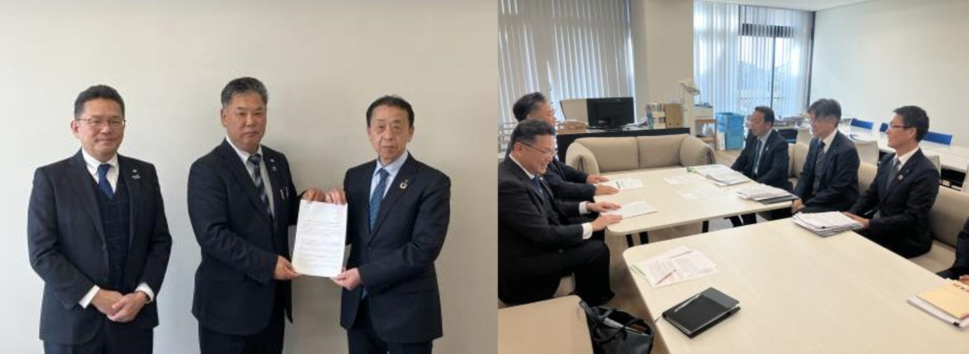 要請書は、連合奈良の水野仁会長とUAゼンセン奈良県支部の小合弘人支部長から、奈良県産業部の森本壮一部長に手交し、今回の要請に至った背景やUAゼンセンの中小企業労働組合の現状を説明しました。