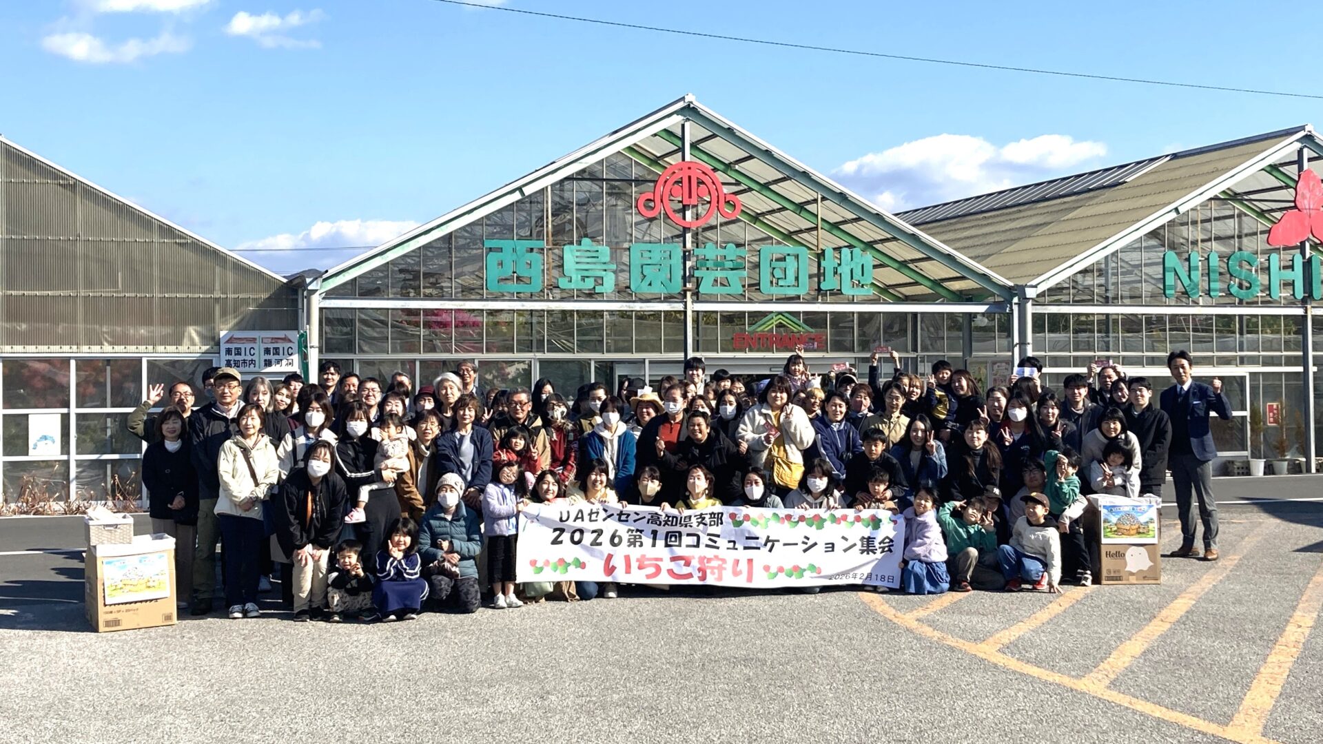 高知県支部は2026年2月18日(水)に南国市の西島園芸団地において、コミュニケーション集会「第1回いちご狩り」を開催しました。組合員とその家族の皆さん総勢116名にご参加いただき、旬の味覚を楽しみながら、和やかで笑顔あふれるひとときを過ごしました。