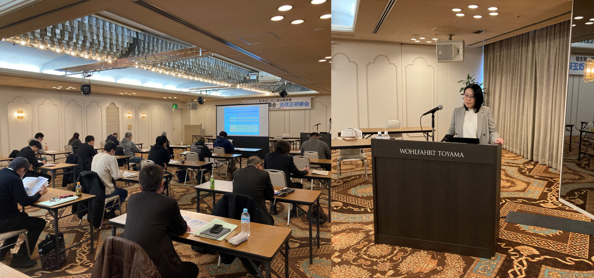富山県支部は2026年3月15日(日)、第3回運営評議会終了後に「2026法改正セミナー」を開催しました。本セミナーでは、労働条件局員を講師に、2026年1月に改正された取適法を中心に、2026年度中に改正が予定されている事案について説明を行いました。