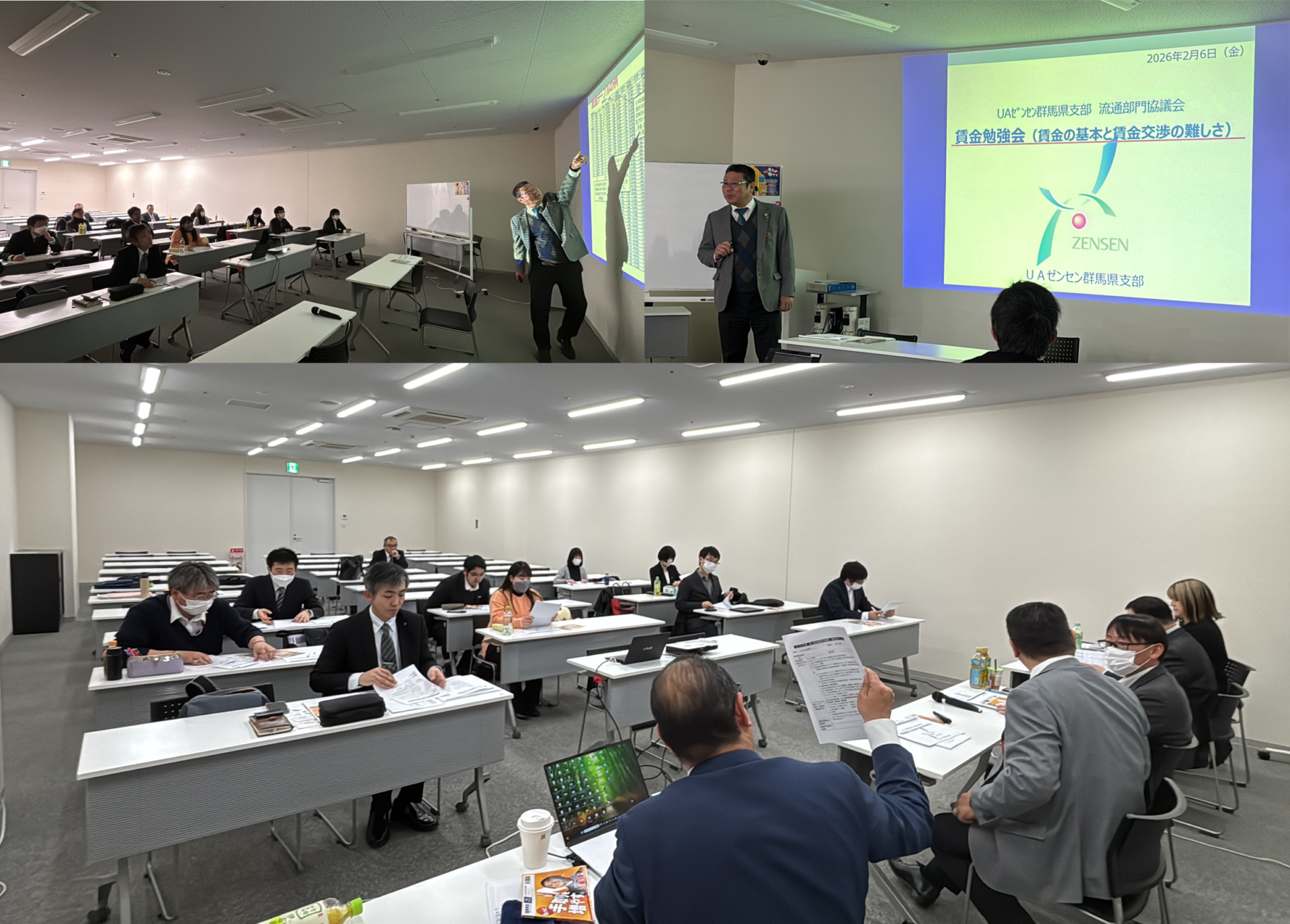 群馬県支部は2026年2月6日(金)、前橋市内の会議室において、群馬県支部流通部門協議会の開催に併せて、賃金勉強会を開催しました。7組合から16名が参加し、賃金に対する理解を深める学習の場となりました。