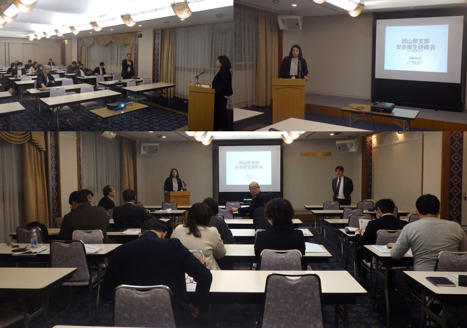 参加者は、講義を通じて職場における安全確保や健康管理の重要性を改めて認識し、自身の職場の取り組みを見直す機会となりました。安全で安心して働ける職場づくりに向け、共通認識を深める有意義な研修会となりました。