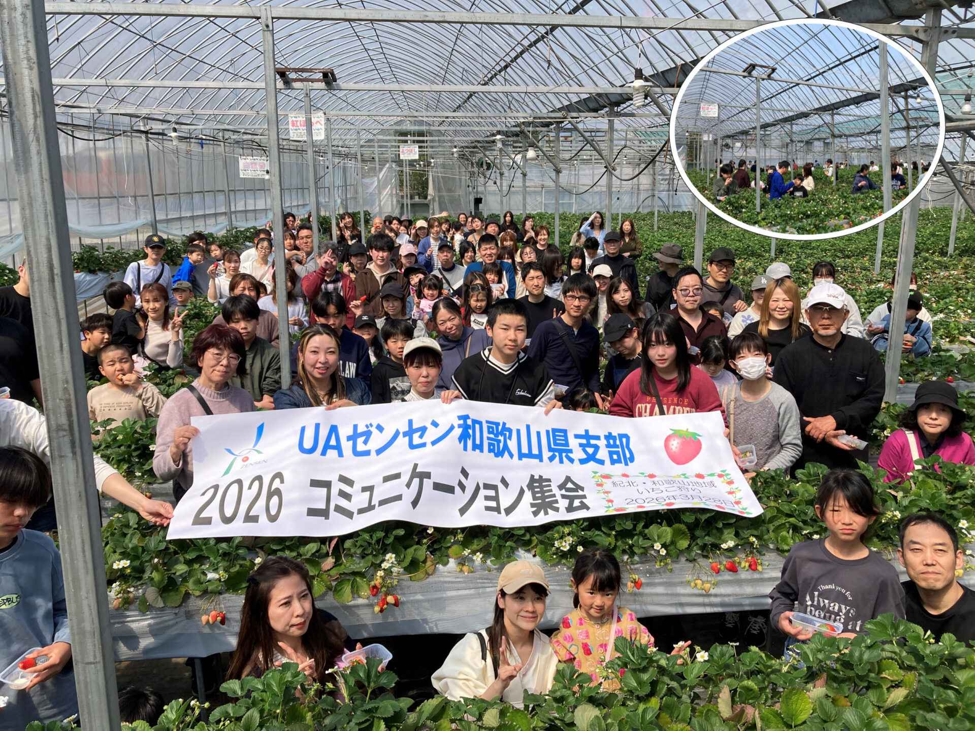 和歌山県支部は、2026年3月28日(土)、和歌山県九度山町にある「奥いちご農園」にて、2026コミュニケーション集会「いちご狩り交流会(紀北)」を開催しました。