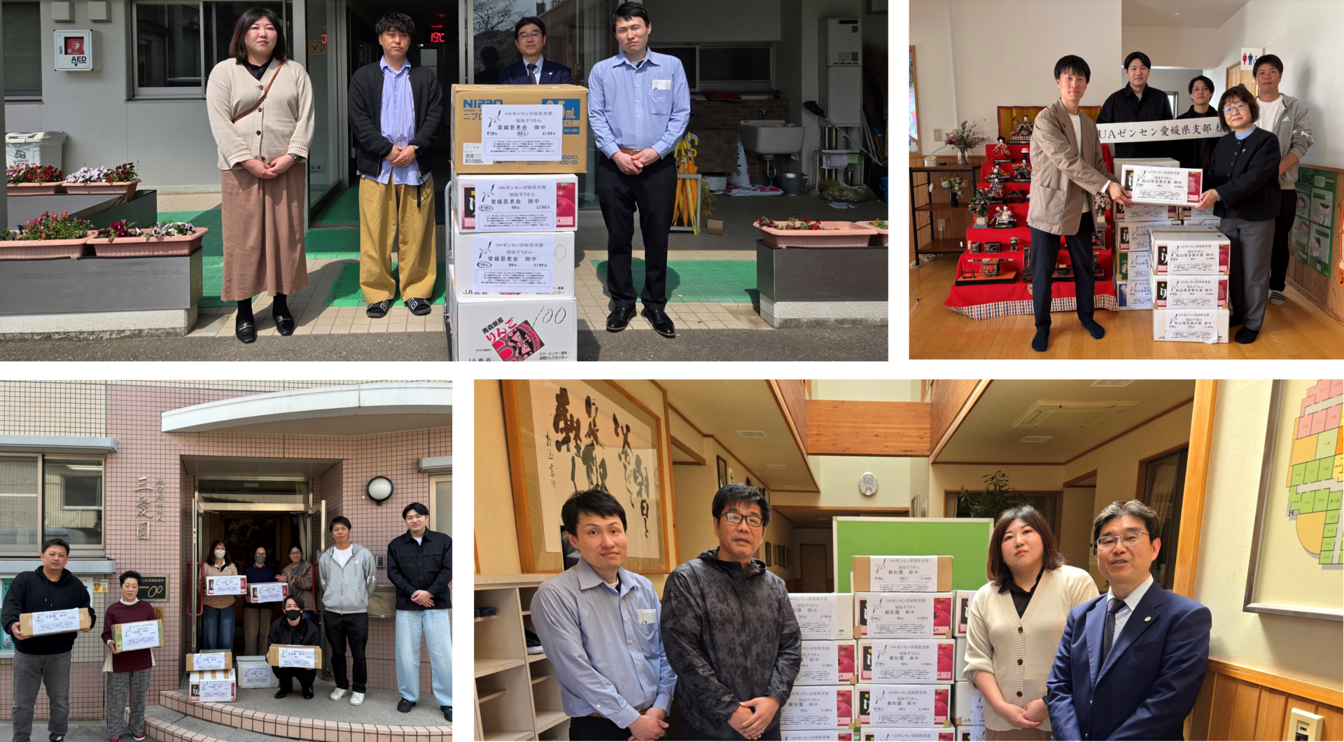 (上段左より)愛媛慈恵会、松山信望愛の家、(下段左より)三愛園、親和園の4施設へ寄贈