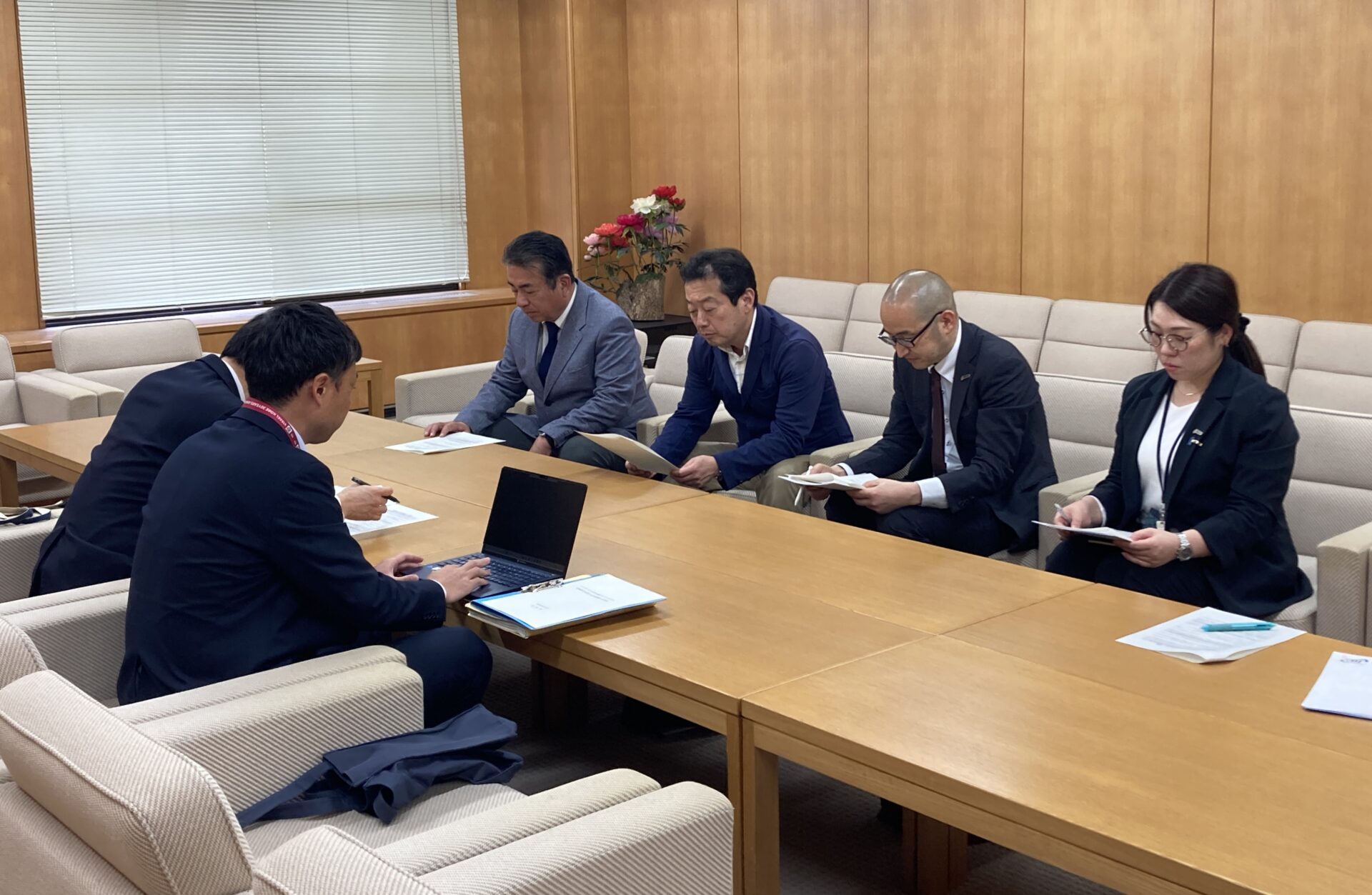 面談では、県の関連予算の内容やオンライン研修の導入状況、燃料費対策および熱中症対策に関する支援について説明を受けました。あわせて、介護職員の賃上げ、残業代の適正な支払い、兼務ルールの見直しについて意見交換を行いました。