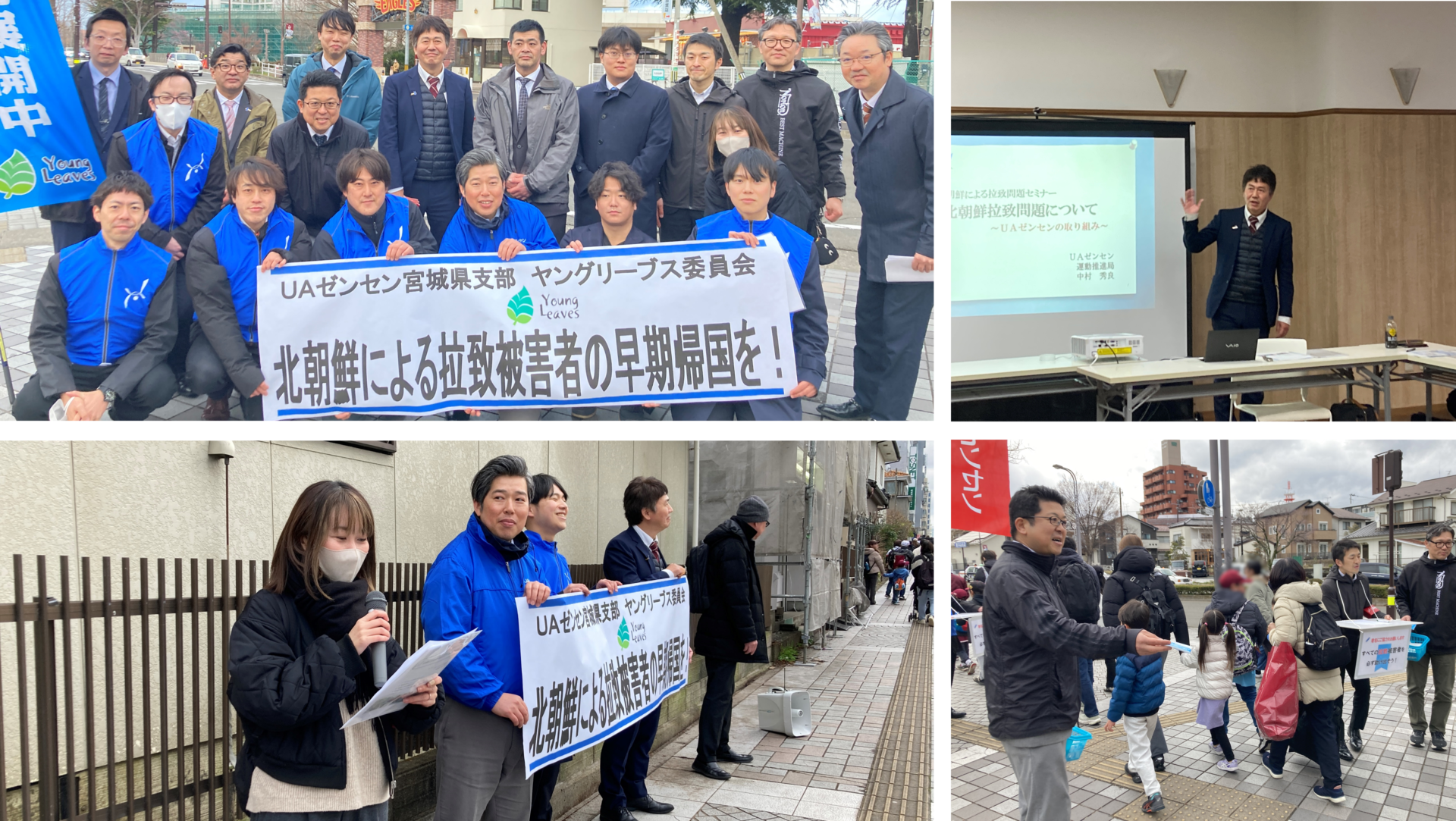 セミナー終了後は、楽天モバイル最強パーク仙台前にて街頭署名活動を実施しました。参加者全員が協力を呼びかけ、被害者全員の早期帰国を訴えた結果、52筆の署名が集まりました。また、読売新聞およびTBC東北放送の取材が行われ、本活動の様子が紹介されました。