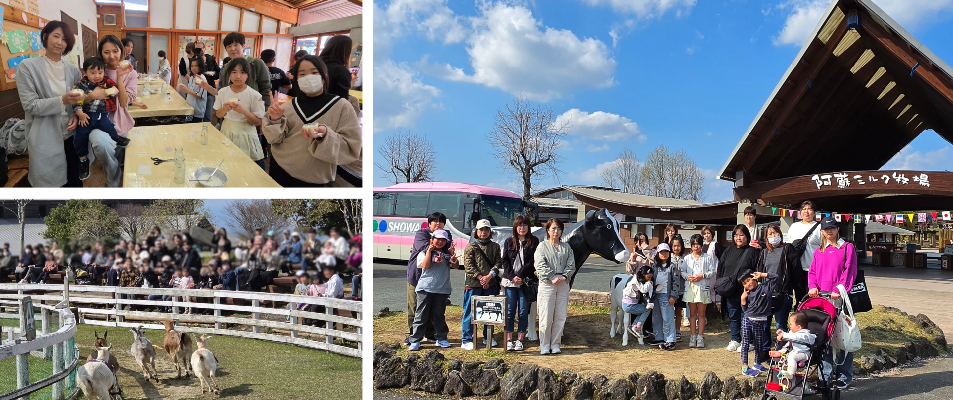 その後は動物レースや動物とのふれあい体験を行い、大人から子どもまで一日を通して楽しめるバスハイクとなりました。