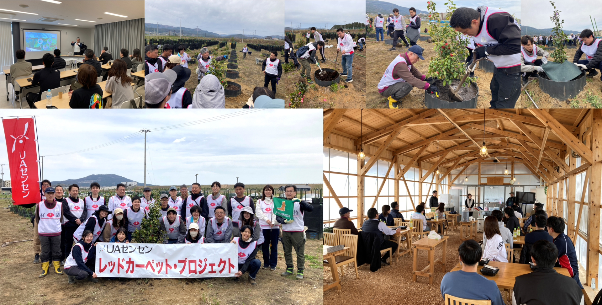 UAゼンセンは、東日本大震災からの復興・創生へ向けた支援活動の一つとして、岩手県陸前高田市で一般社団法人レッドカーペット・プロジェクトがおこなっている椿の植樹にボランティアを派遣しています。