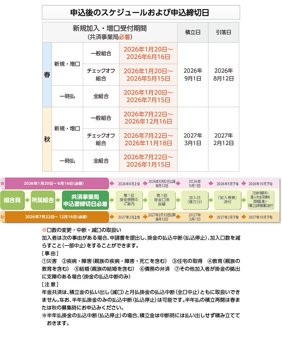 月払、半年払、一時払の新規加入・増口の加入スケジュールは、次のとおりです。