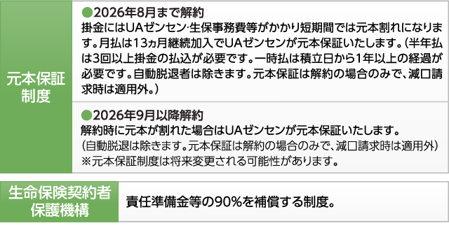- 退職等で組合籍を離れた場合、UAゼンセン福祉共済会(年会費1,800円)へ異動することにより、UAゼンセン共済を継続することができます。