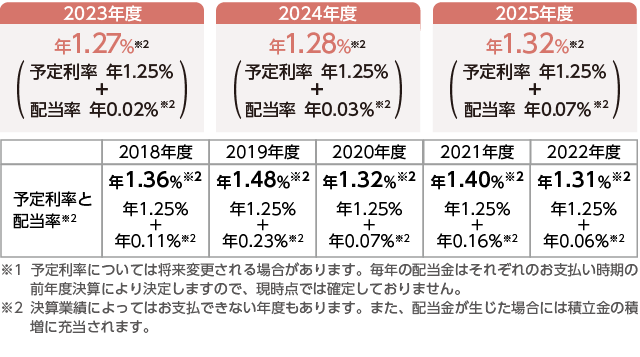 特長2 予定利率は年1.25%※1(引受会社全体の加重平均予定利率は