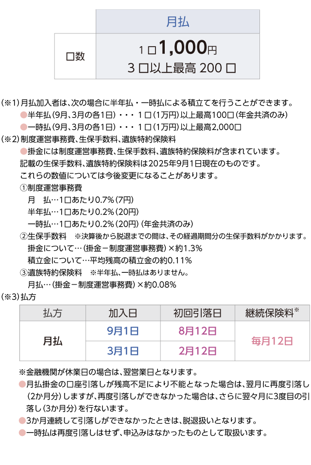 特長9 掛金の払方は、月払加入で、半年払、一時払を自由に選択可能